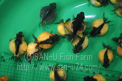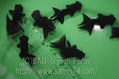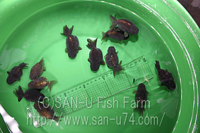 グレードAA。ご当地金魚なので大きなぶれはないでしょう。安心して到着が待てる品種です。AAなのでお腹まで真っ黒。 |