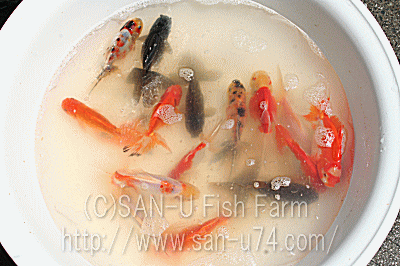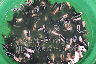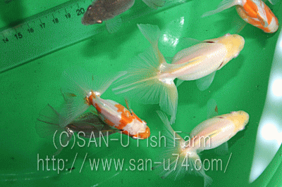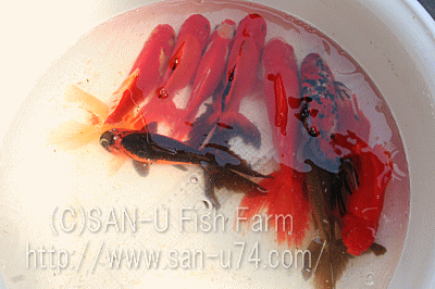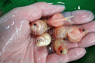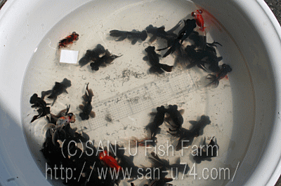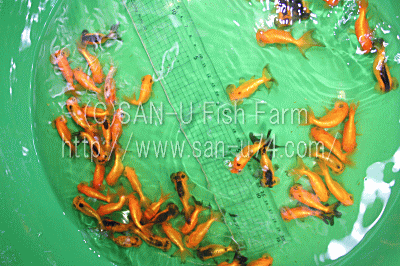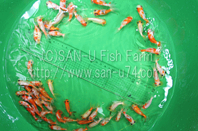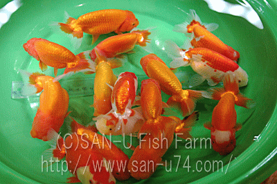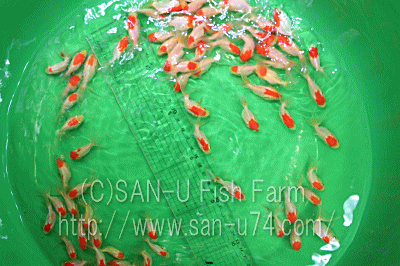 ↑らんちゅう 当歳 10尾で1,050円/セット