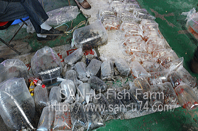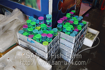 発泡スチロールの中には、補充の熱帯魚がたくさん、入っています。 |
