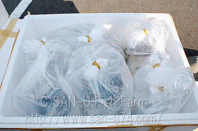 処置が完了すれば、そのままルート配送を開始。地方の方へは一旦弊社の水槽で畜養し、翌日以降に発送します。 |