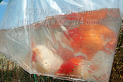 到着したら空港内ですぐに開梱し、魚の健康状態を確かめます。水質悪化や酸欠、水漏れがあれば、その場でパッキングや投薬を行います。