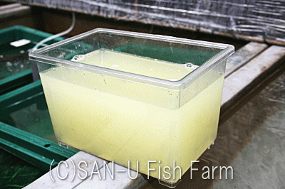 「育成」は低カロリーで消化吸収が非常に早く、水温15℃で与えても丸1日で糞を排泄。
