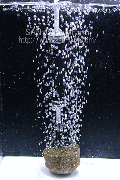 わずかでも酸素濃度が上昇すると金魚の成長促進、好気性バクテリアの活性化により亜硝酸減少、アオコの繁殖促進などの効果がある。