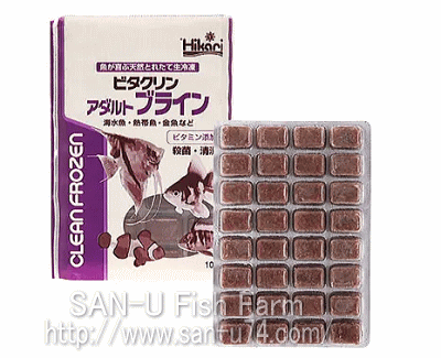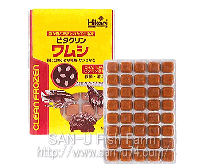 孵化後12時間以内のシュリンプ(400〜500μm)を急速冷凍。