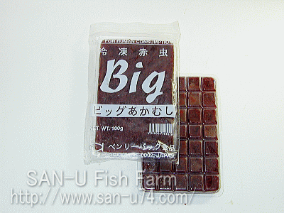稚魚には不向きだが親魚、大型個体に最適。大きくても皮は普通の赤虫と同じぐらいの軟らかさ。