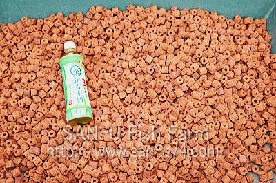 金魚用に設計された多孔質のリングろ材。糞・汚泥が多くても目詰まりしにくい大粒。