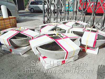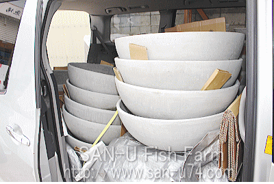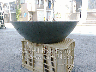 土佐錦の美しい独特な尾を創り上げるには、当歳のうちに泳ぎを抑制する「丸鉢」が適している。